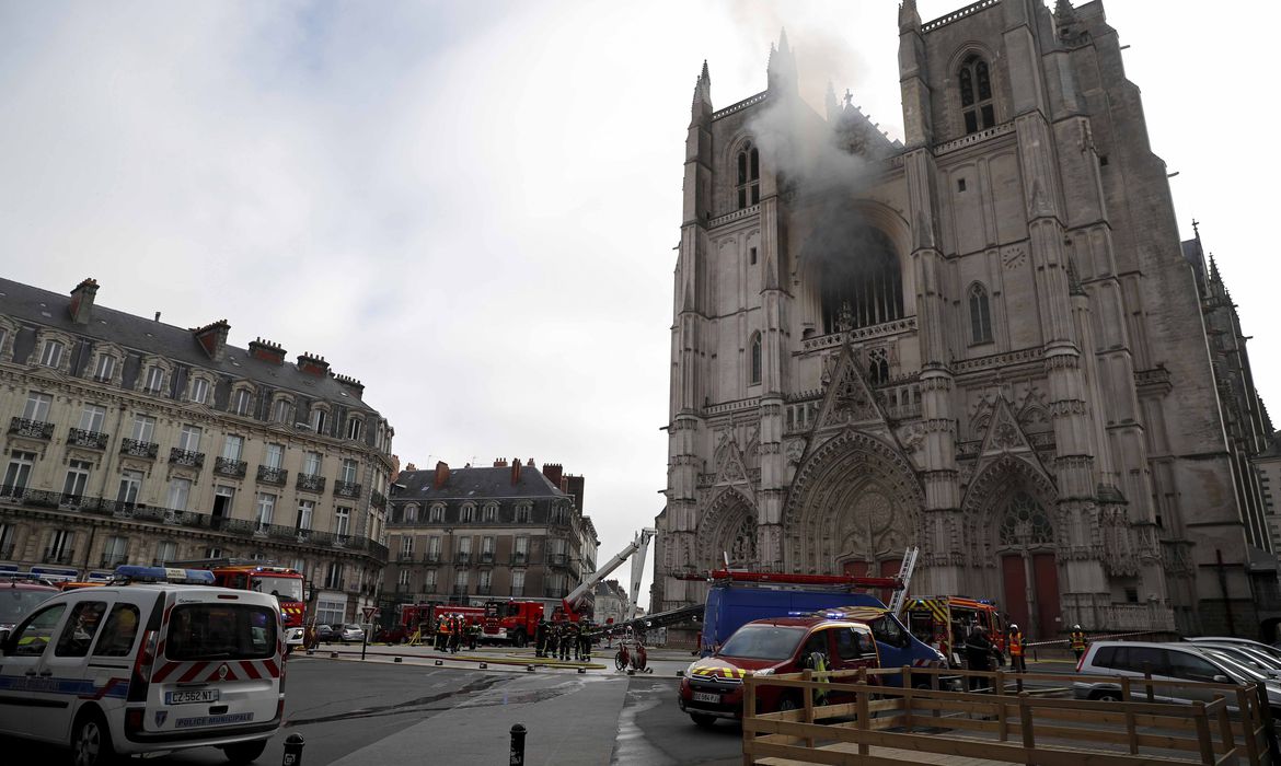 A catedral de Nantes, no oeste da França, teve suas vidraças arrebentadas e seu órgão destruído após um incêndio, neste sábado (18). A construção é do século 18.