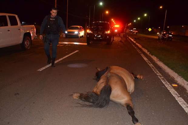 Na noite desta quinta-feira (24), um cavalo morreu depois de ser atropelado por uma caminhionete Toyota/Hilux, em Nova Andradina, que fica a 296 km de Campo Grande.
