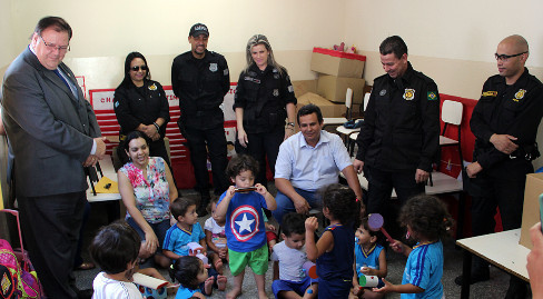 A entrega foi feita pelo diretor-presidente da Agepen, Ailton Stropa Garcia, acompanhado do diretor de Assistência Penitenciária, Gilson Martins, do diretor da Máxima, João Bosco Correia, do chefe de Gabinete, Dumas Torraca e dos servidores Marli Guerino, Flávio Marques, Thiago Leite e Maísa Rocha. O grupo foi recebido com festa pelos baixinhos, que não se contiveram e começaram a brincar no mesmo momento.