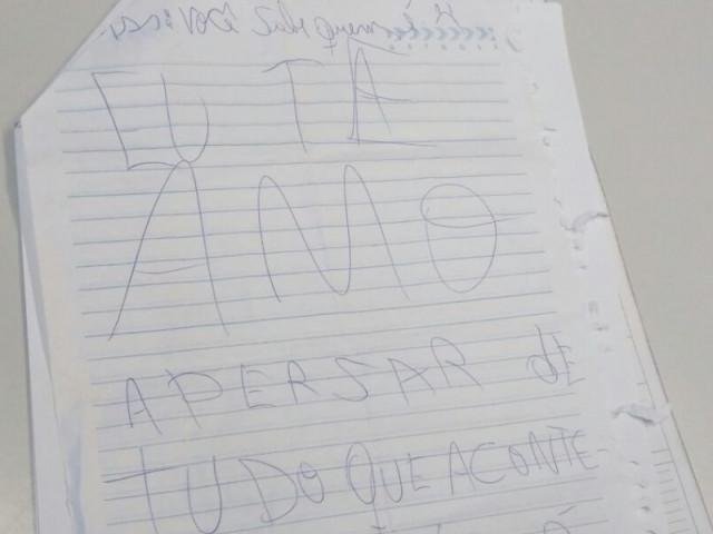 Um bilhete foi encontrado no bolso do menino com a seguinte frase: "você sabe quem é. Eu te amo. Apesar de tudo que aconteceu, vocé é tudo para mim". O pai relatou que o garoto tinha um relacionamento com uma menina e que minutos antes de sair de casa havia recebido uma ligação.