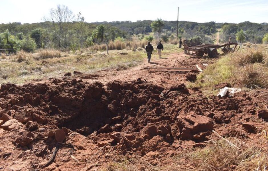 Uma bomba enterrada em uma estrada, supostamente, por guerrilheiros marxistas paraguaios no ataque contra contingente da Força-Tarefa Conjunta (FTC), na quinta-feira (29), na fronteira com Mato Grosso do Sul, destruiu completamente o caminhão militar e mandou para os ares os corpos de três sargentos do Exército do país vizinho.