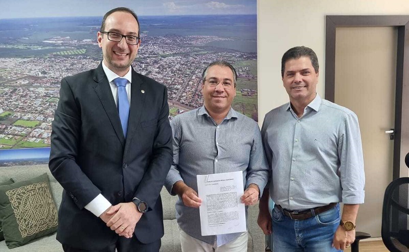 Pedro Paulo Gasparini, secretário Thiago Caminha e o prefeito de Maracaju, Marcos Calderan (Divulgação)
