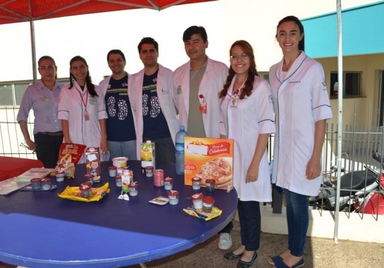 Com o tema “Doença Renal e Obesidade – Estilo de vida saudável para rins saudáveis”, a equipe multiprofissional do setor expôs alguns alimentos como pizza, sucos, pipoca doce, sorvete, achocolatados, gelatina, entre outros, para demonstrar aos presentes o quanto de gordura, carboidrato e sódio contém cada comida.
