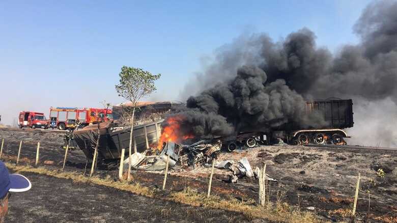 O incêndio destruiu os veículos e se alastrou pela vegetação ao lado da rodovia, os motoristas morreram carbonizados e as chamas foram contidas uma hora depois do acidente.