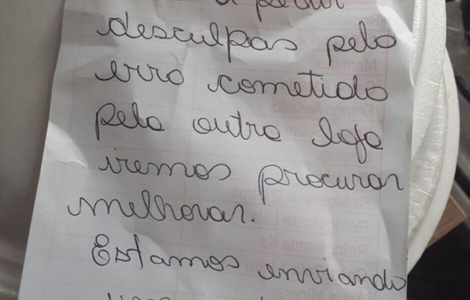 Colado as embalagens das refeições, havia mais um pedido de desculpas de Jéssica.