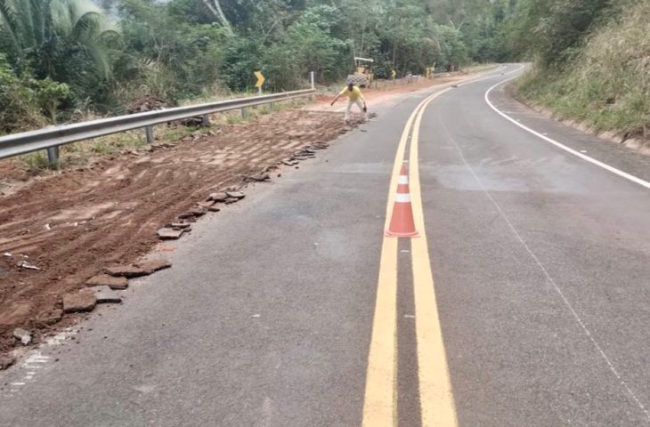 O trecho está parcialmente interditado desde segunda-feira (24) devido à realização de obras de manutenção no aterro e no talude da rodovia.