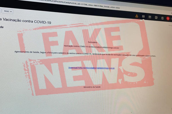 O golpe do agendamento da vacinação contra a Covid-19 continua sendo praticado, apesar de em janeiro deste ano o Ministério da Saúde já ter alertado para possíveis fake news.