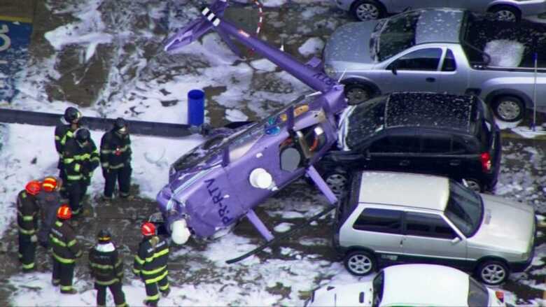 Um helicóptero que prestava serviços para a Rede TV caiu em Osasco, SP, na tarde desta quarta-feira (24).