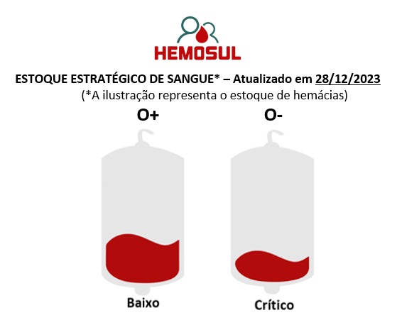 Para reabastecer os estoques que estão baixos, devido às festas de final de ano e início do período de férias, o Hemosul de Campo Grande faz apelo para doadores de sangues do tipo O negativo (O-) e O positivo (O+).