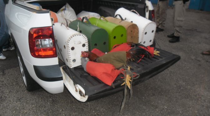 Foi verificado que todos os galos tiveram as esporas removidas, alguns apresentavam ferimentos, estavam com os pés amarrados, o corpo e cabeça enrolados em tecidos e acondicionados na carroceria e cabine do veículo. Além disso, os galos estavam dentro de pequenas caixas com restrição de movimentos, privação de luz e circulação aérea inadequada, o que caracteriza crime de maus-tratos. Os animais e o veículo foram apreendidos.