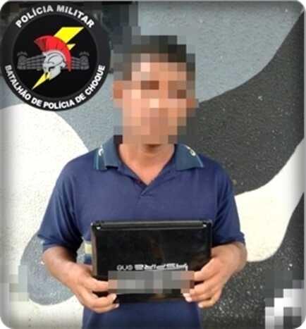 O comunicante informou que o autor estava com um notebook e passaria em frente à sede do Batalhão de Choque. Com as características do suspeito os policiais fizeram a abordagem do suspeito e encontraram o aparelho subtraído.