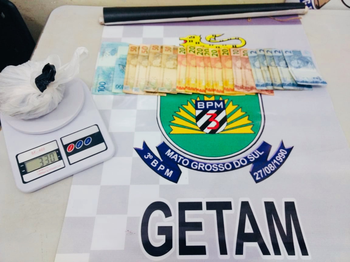 Na noite desta quarta-feira (4), policiais militares do Getam (Grupo Especializado Tático de Motos), prenderam um homem em flagrante por tráfico de drogas, no bairro na Vila Cachoeirinha, em Dourados.