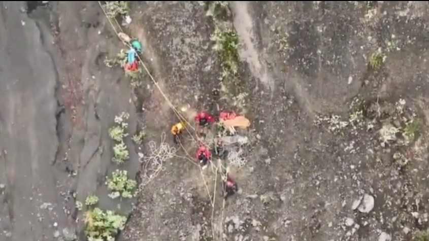 Socorristas indonésios divulgaram novas imagens do resgate da brasileira Juliana Marins no Monte Rinjani onde é possível ver a distância onde o corpo estava ao ser içado para cima.