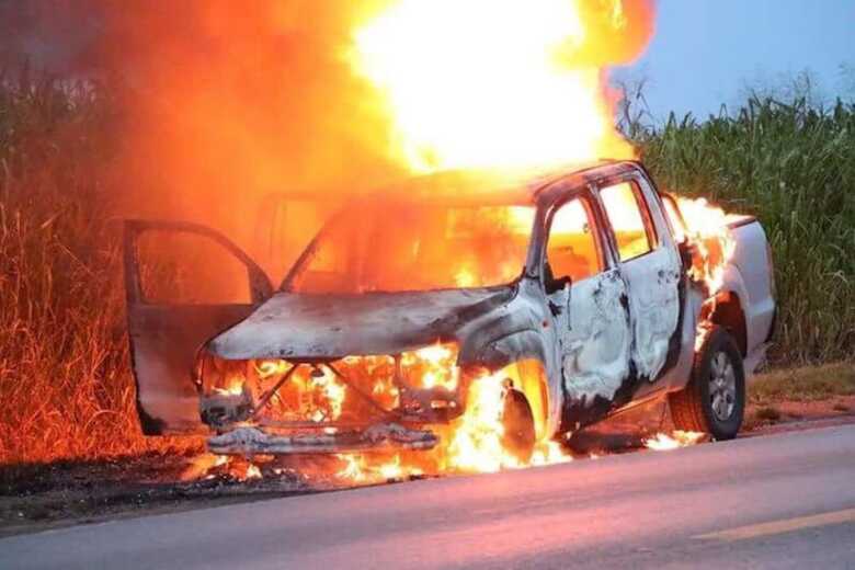 Na tarde desta sexta-feira (6), uma caminhonete S10 pegou fogo, próximo ao Trevo do Departamento de Operações de Fronteira (DOF), em Dourados, que fica a 228 km de Campo Grande. O local tem grande fluxo de veículos.