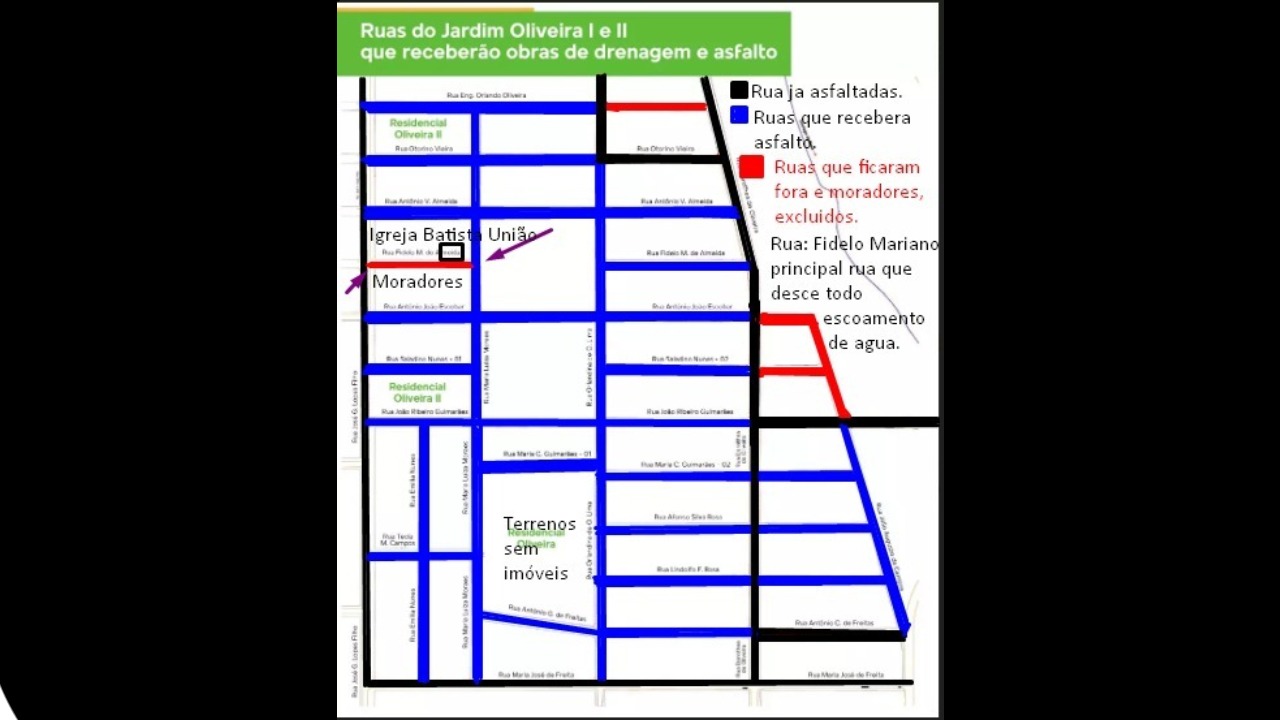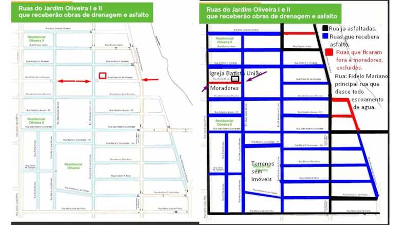 “A Rua Fidelo Mariano na parte de baixo, onde fica a Emei Conjunto União, estava fora [do projeto], depois que a mídia veio, eles incluíram, porém, fomos atrás para saber e eles só incluiram a parte de baixo, mas não aceitamos que deixem esse pequeno trecho de fora”, contou Rodrigo ao JD1 Notícias.