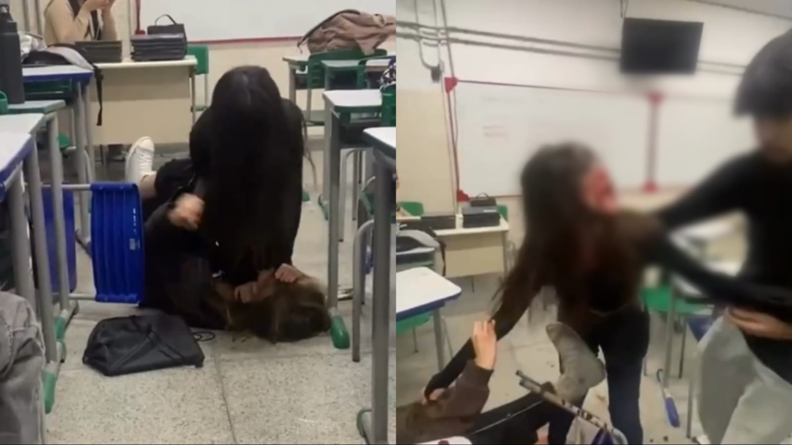 Vídeos gravados e divulgados por colegas mostram que uma das jovens, de 17 anos, dá socos no rosto da outra, de 18, que saca uma tesoura da cintura, com a qual golpeia a outra aluna, ferindo-a na região da cabeça, que sangra.