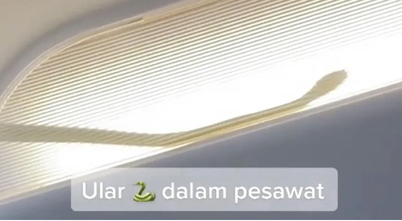 Nas redes sociais, um usuário do TikTok postou um vídeo mostrando a cobra no compartimento de iluminação do avião.