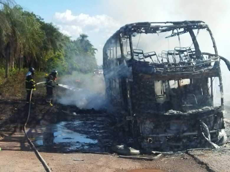 Um ônibus de viagens acabou consumido pelas chamas na tarde desta terça-feira (9), em trecho da BR-262 em Campo Grande. O veículo seguia no sentido para Corumbá.