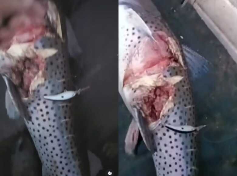 Um pescador denunciou os impactos predatórios da pesca esportiva no Rio Ivinhema. Nas imagens, ele mostra um peixe ainda vivo, mas com o corpo dilacerado por conta do uso de isca de fundo.