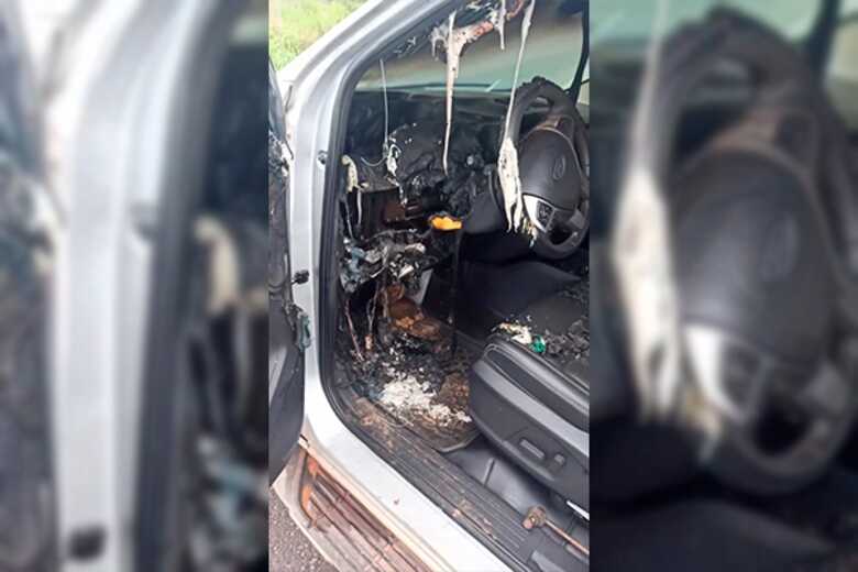 Com a força do curto-circuito, o para-brisa do carro quebrou. Apesar do susto, o motorista saiu ileso do incidente, enquanto a picape teve perda total e precisou ser rebocada do local.