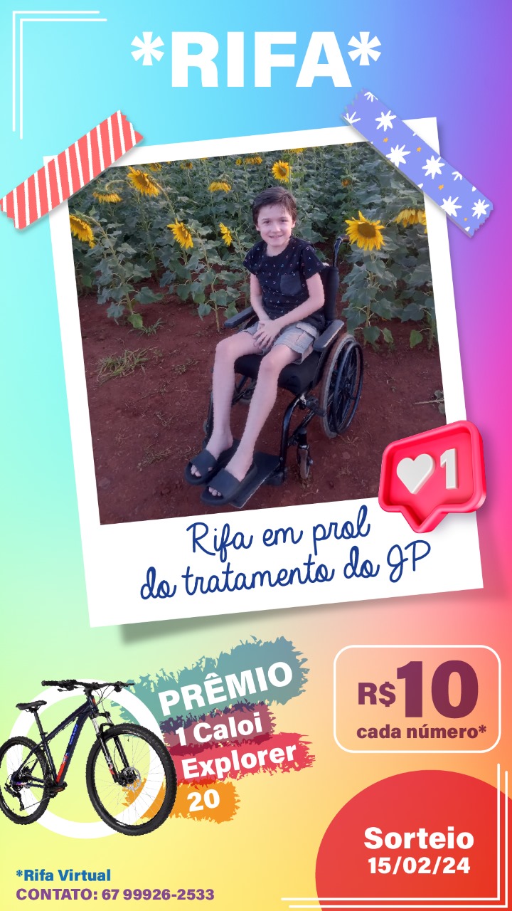 João Paulo do Prado Moura, de 9 anos, nasceu com a chamada Distrofia Muscular de Duchenne. Uma doença degenerativa, que já atingiu o pulmão e o coração do menino, e não tem cura. A família está promovendo a rifa de uma bicicleta para arrecadar dinheiro para levar João a São Paulo para uma consulta com a especialista no caso.