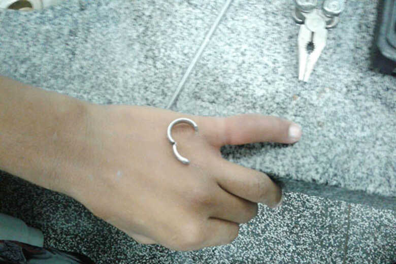 O objeto de aço cirúrgico, deixou o dedo com grande inchaço, e em casos como esse a falta de circulação sanguínea nas extremidades do corpo pode acarretar em necrose do membro e pode levar a amputação, informou os Bombeiros.