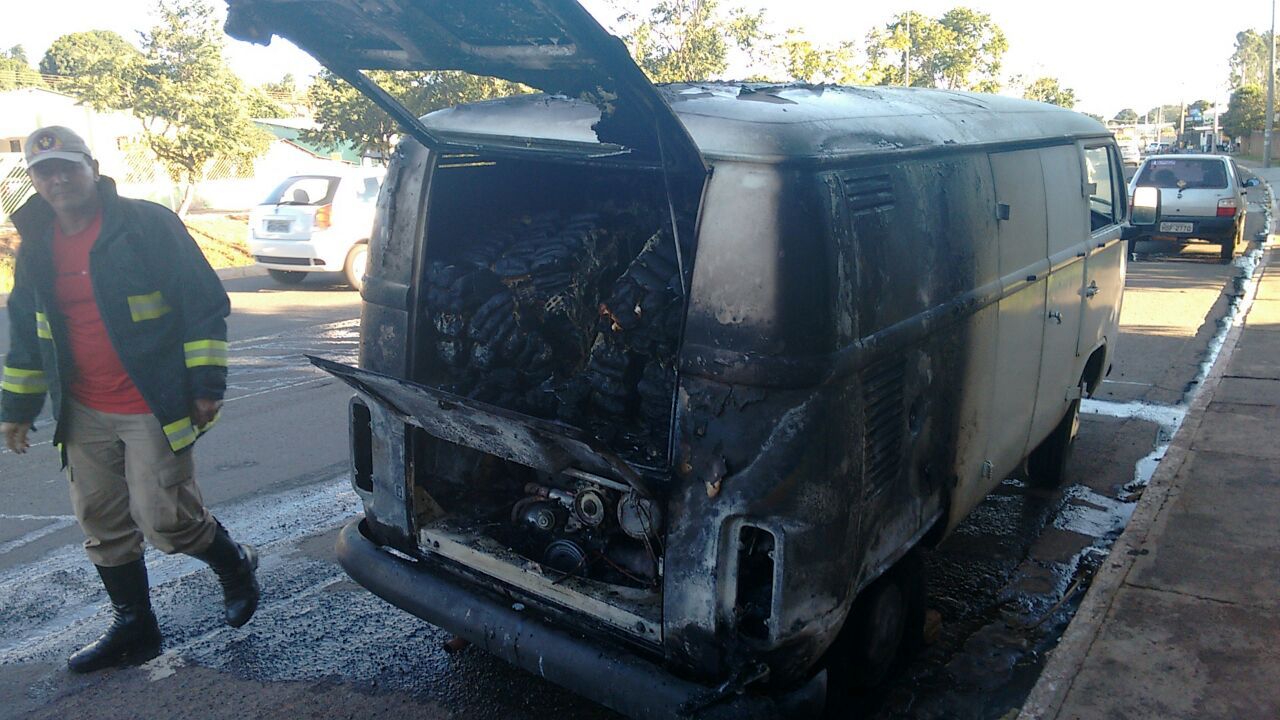 José Laurindo, de 52 anos, teve um prejuízo de R$ 10 mil depois que sua VW Kombi, ano 1982, pegou fogo e ficou com a parte de trás toda destruída. O fato ocorreu na tarde dessa sexta-feira (23) na Avenida Interlagos no bairro Albuquerque – região sul de Campo Grande. O motorista estava carregado com 56 caixas de pães e dessas 34 foram salvas.