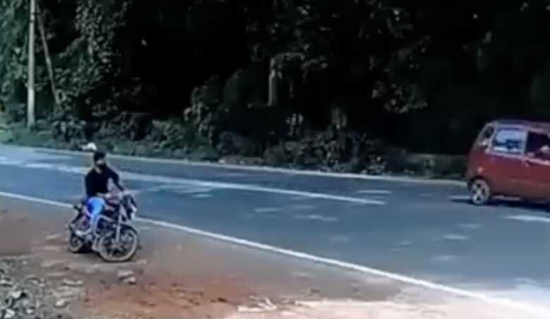 O vídeo de um homem se livrando de um acidente gravíssimo circulou as redes sociais e no mundo. O rapaz está em uma moto estacionada no acostamento de uma rodovia, quando uma pá carregadeira perde o controle e vem em direção do homem, no exato momento um terceiro veículo entra em cena empurrando o rapaz do local.