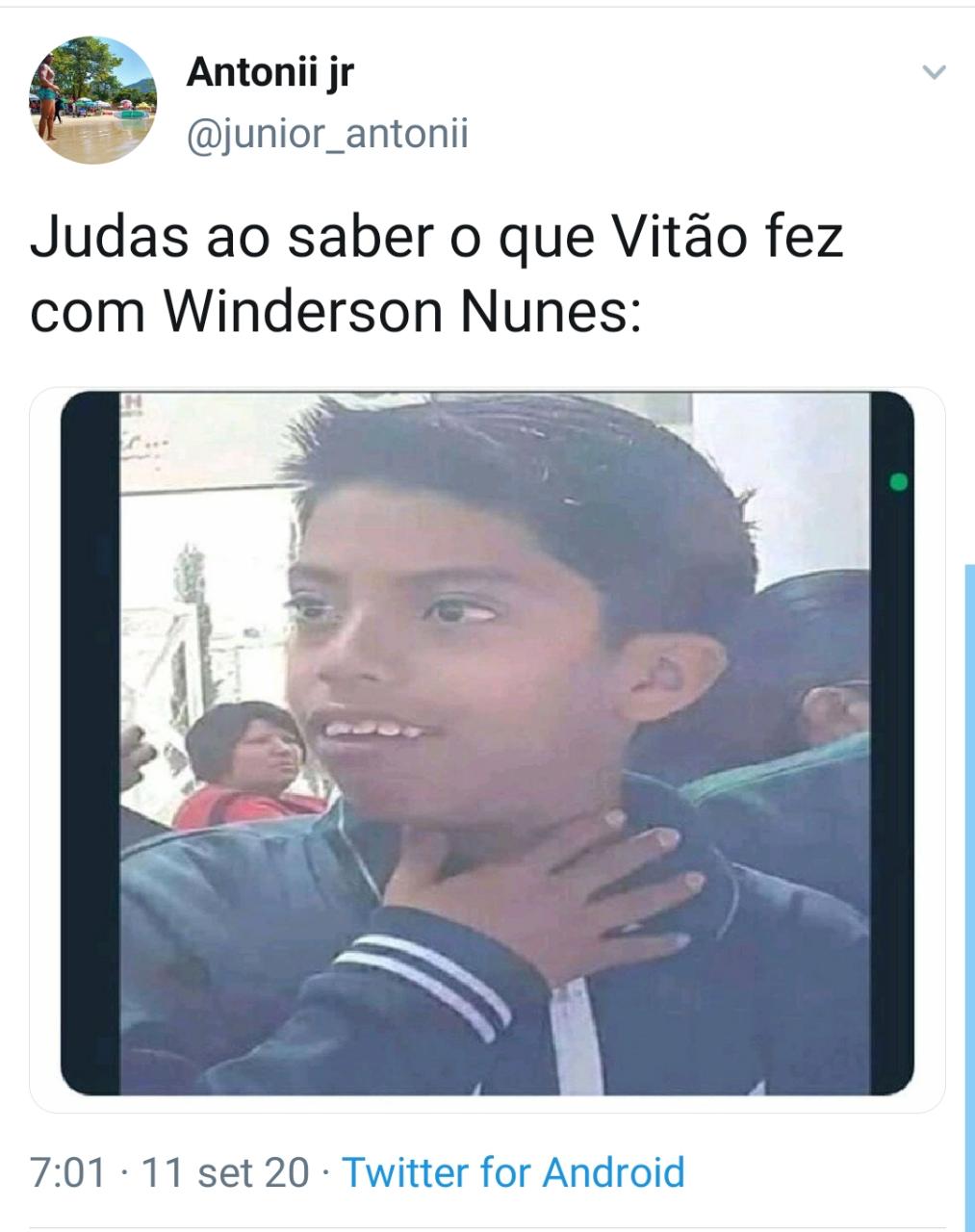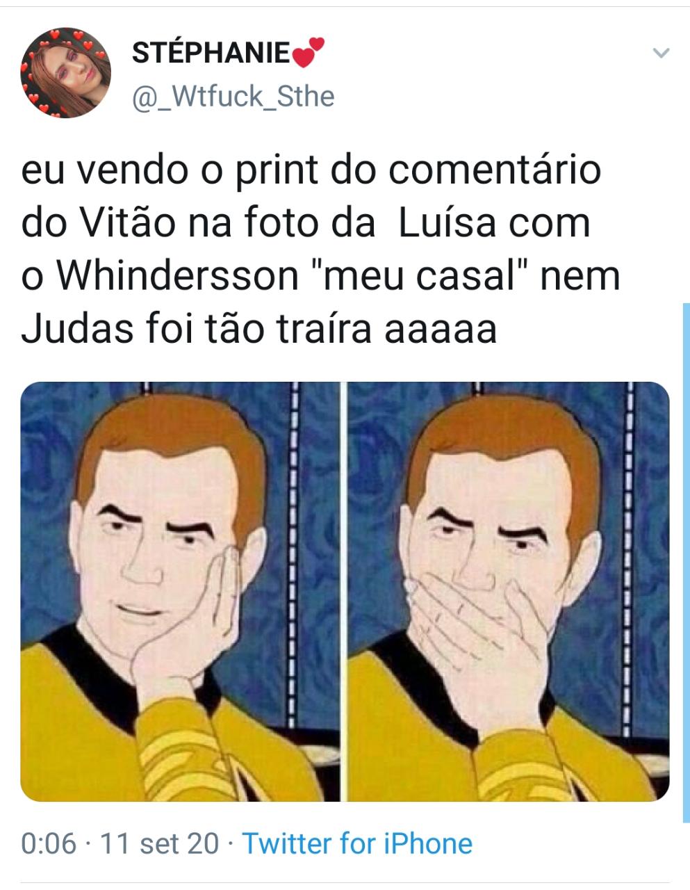 Uma internauta postou. "Vendo o print do comentáriodo Vitão na foto da Lísa com o Whindersson 'Meu Casal' nem Judas foi tão traíra".