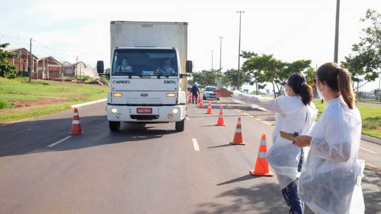 Durante o fim de semana, aproximadamente 11,8 mil pessoas em veículos vindos de outras localidades foram abordadas nas barreiras sanitárias instaladas pela Prefeitura de Campo Grande em quatro pontos estratégicos dos principais acessos ao município.