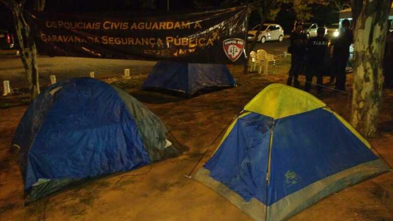 Este sábado (10) é o quarto dia de acampamento dos policiais civis em frente à governadoria em protesto ao governo do estado que não cumpriu os compromissos firmados com a categoria. O grupo permanece firme mesmo diante das baixas temperaturas em Campo Grande que nesta madrugada registrou, segundo o INMET, 7,3ºC, mas a sensação térmica era de - 3ºC devido ao vento.