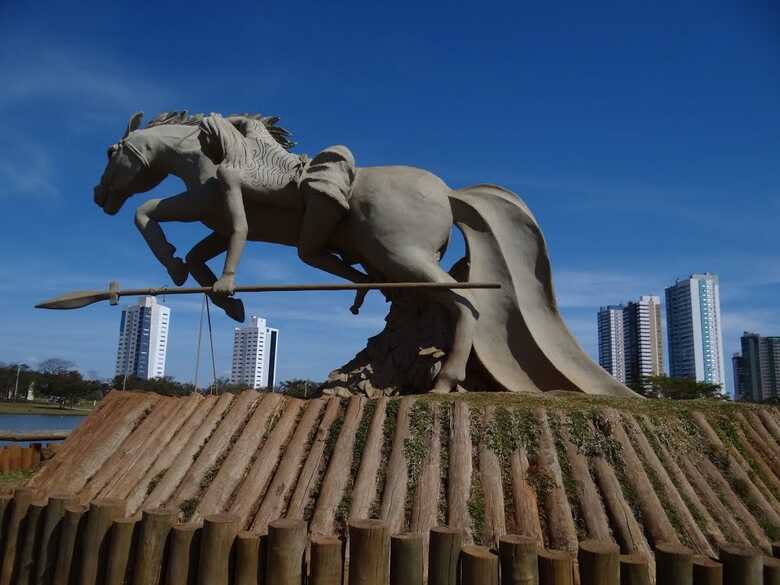 O monumento ‘Cavaleiro Guaicuru’ fica no Parque das Nações Indígenas, em Campo Grande. A estátua é uma obra de ferro, resina e pó de mármore, de quatro metros de altura, esculpida pelo artista Anor Mendes, em homenagem aos índios guerreiros da etnia Guaicurus.