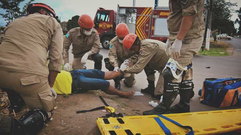 No local os militares prestaram os primeiros socorros a um homem de 40 anos, motociclista, o mesmo estava caído no chão e apresentava escoriações nos braços e corte lacerante no calcanhar no pé esquerdo e amputação de metade do dedo mínimo da mão esquerda, o mesmo estava consciente e orientado.