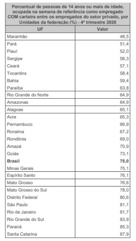 Conforme o IBGE, 20 estados brasileiros registraram recorde da taxa média de desemprego em 2020. Dentre os 20 estados que registraram recorde, 12 tiveram taxa superior à média nacional.