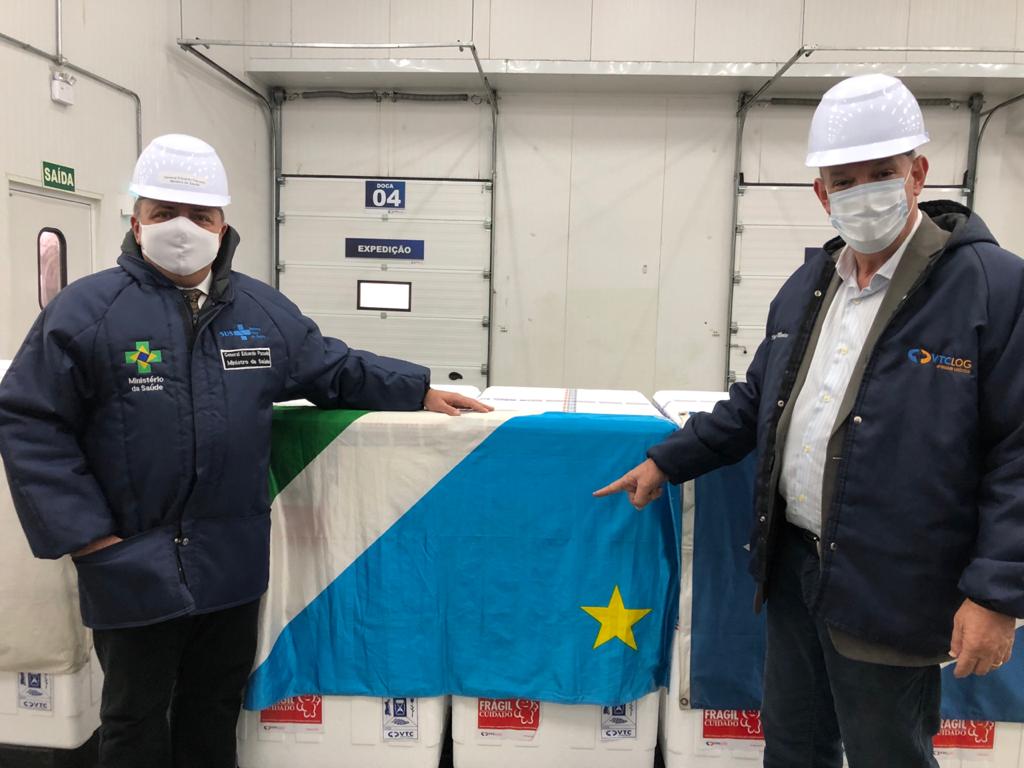 Após a chegada das doses, por volta das 17h, haverá um ato de vacinação simbólica e a distribuição começa na terça-feira (19), a partir das 7h para os municípios.
