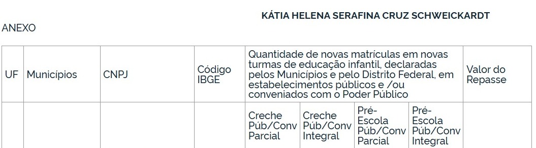 De acordo com o documento, o município receberá um total de R$ 276.528,41, destinados especificamente à manutenção de 64 novas turmas de pré-escola com convênio parcial com o poder público e 15 turmas com convênio integral, em instituições comunitárias, confessionais ou filantrópicas sem fins lucrativos.