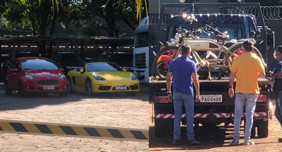 Conforme informado nas primeiras horas da operação, havia mandato de sequestro de três veículos, dois imóveis e valores que eventualmente existentes em contas bancárias de quatro investigados. No pátio da superintendência, estão estacionados uma Range Rover Evoque, um Porsche amarelo, um Ford Fiesta e Honda Civic, que foram apreendidos na operação segundo apurado pela reportagem.