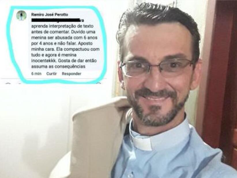 O padre escreveu no Facebook que a vítima, abusada sexualmente por quatro anos, "gosta de dar".
