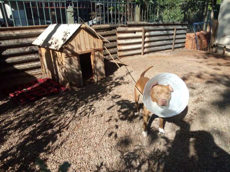 Uma funcionária pública relatou ao JD1 Notícias, que precisa de ajuda para um câncer na orelha de um pitbull que foi encontrado na sexta-feira (21), amarrado e em condições de maus-tratos em uma residência na Rua Felix Pacheco no bairro Cohab.