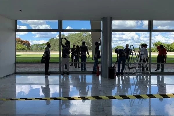 Começou nesta terça-feira (17) as reformas do Palácio do Planalto. As obras tiveram início pouco mais de uma semana após os atos golpistas de 8 de janeiro, onde terroristas invadiram as sedes dos Três Poderes, em Brasília, em uma tentativa falha de golpe de estado.