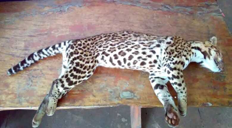 A jaguatirica foi recolhida ao quartel da PMA em Dourados e os policiais farão taxidermia (empalhar) para uso nos trabalhos de Educação Ambiental.