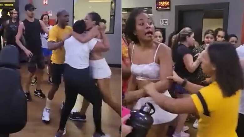 No vídeo, é possível ver que dois funcionários da academia tentam apartar a briga, enquanto as demais pessoas presentes observam e filmam o acontecimento.