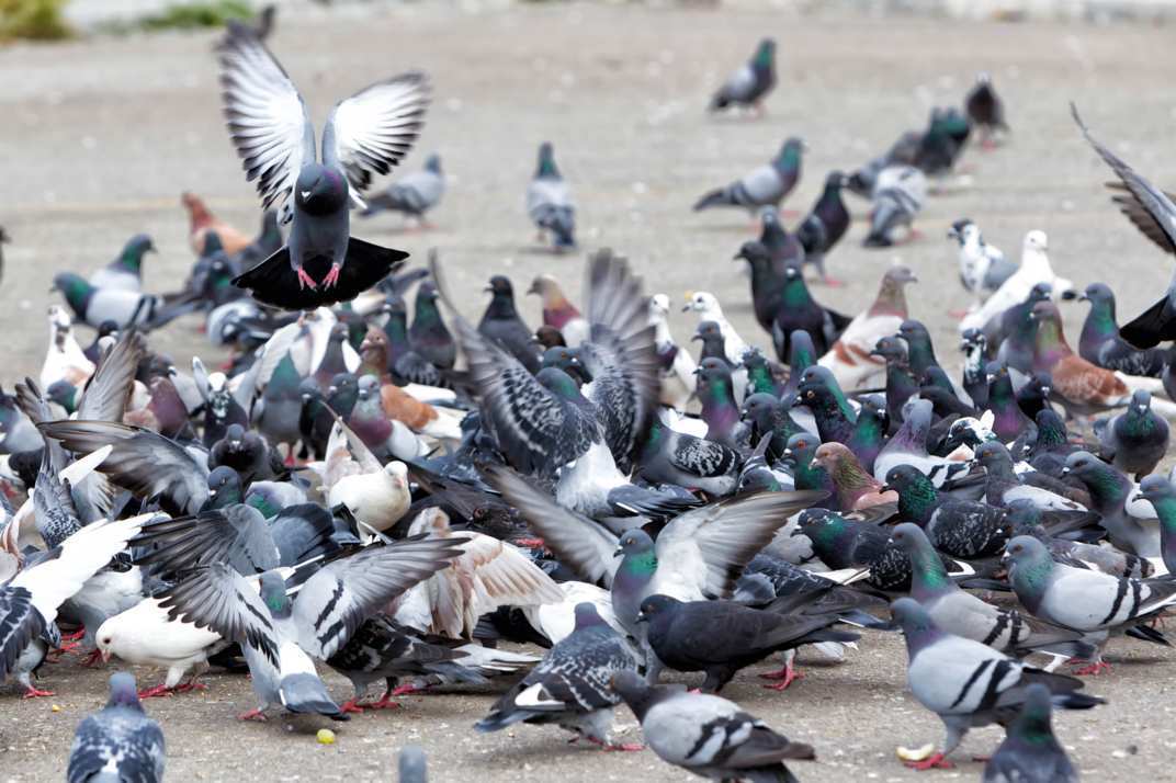 Recolher sobras de alimentos de animais domésticos, aves de gaiola e criações, instalar telas ou alvenaria nos vãos dos telhados para impedir a entrada dos pombos e produtos com odores fortes como creolina, pedras de naftaleno ou formalina podem afastar as aves.