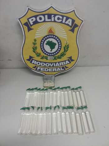 Policiais rodoviários federais apreenderam na noite dessa sexta-feira (16), no km 68 da BR-463, em Ponta Porã, a 346 quilômetros de Campo Grande, 160 comprimidos de ecstasy e 30 frascos de lançaperfume, no veículo Hyndai I30, placas de SC. O condutor, de 27 anos, e o passageiro do veículo foram presos pela posse do entorpecente.