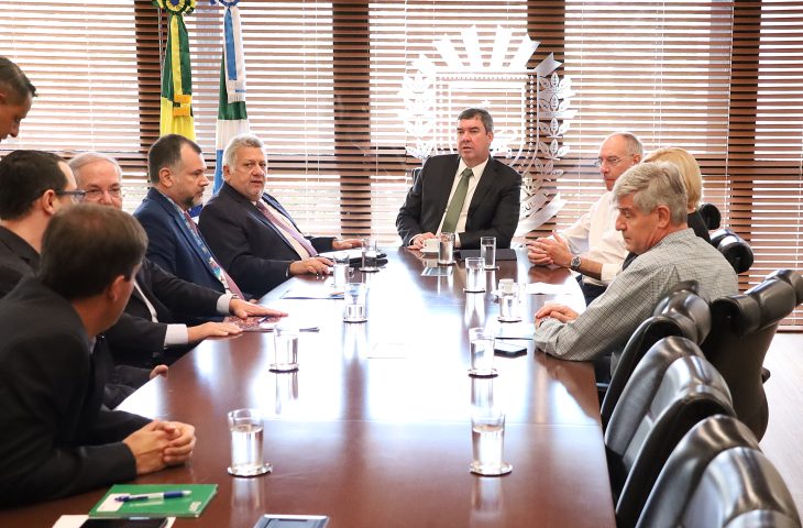 O secretário Hélio Peluffo (Seilog) também participou da reunião juntamente com outros executivos da Caixa, Augusto Vilhalba (superintendente de Rede), Márcio Fonseca (superintendente de Governos), Thiago Barros (superintende de Habitação) e Carlos Fábio (gerente de Governo).