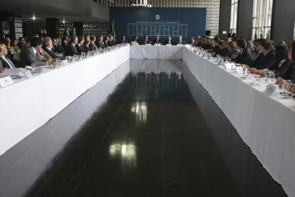 O ministro da Justiça, Alexandre de Moraes, coordena reunião com os secretários de Justiça e de Segurança Pública de todo o paÃs (José Cruz/Agência Brasil)
