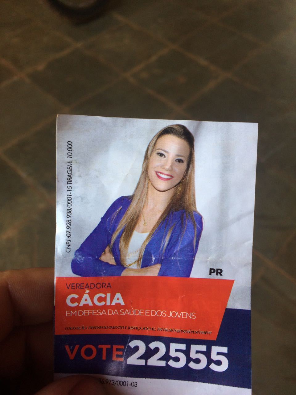 "Vereadora Cácia em defesa da saúde e dos jovens", diz o slogan de sua campanha.