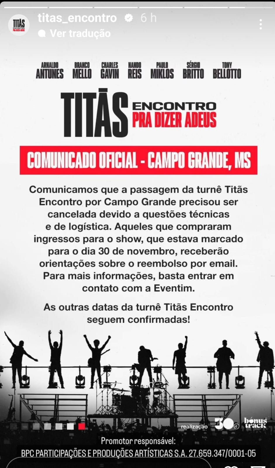 A BPC Produções Artísticas, empresa responsável por trazer os Titãs para Campo Grande/MS, se pronunciou, por e-mail, pela plataforma de ingressos da Eventim, na qual foram vendidos os lotes aos fãs.