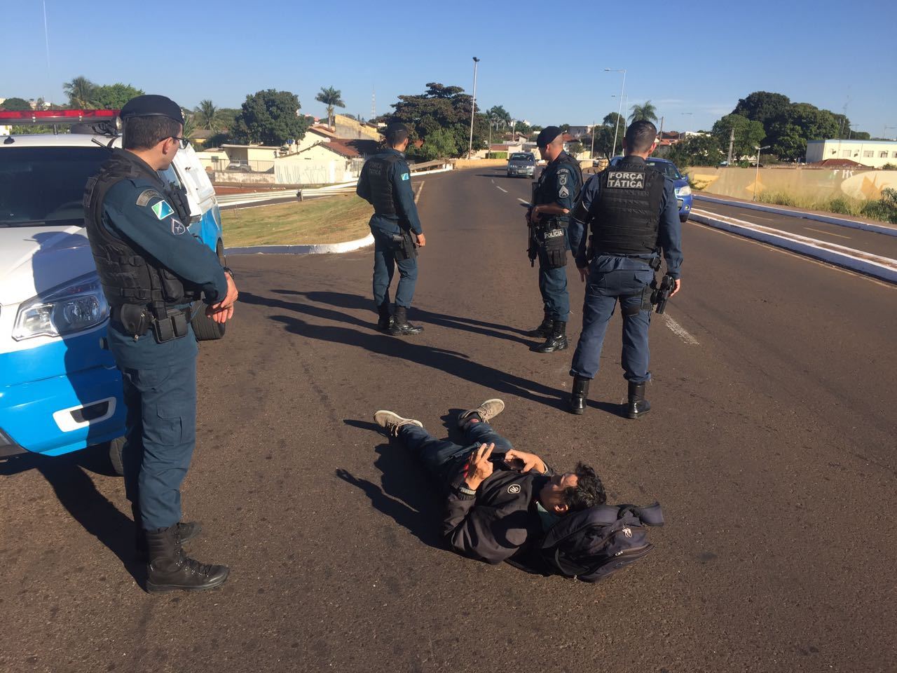 Enquanto a vítima do acidente esperava por socorro, policiais militares da Força Tática fecharam parcialmente o local para preservar a integridade física do motociclista.