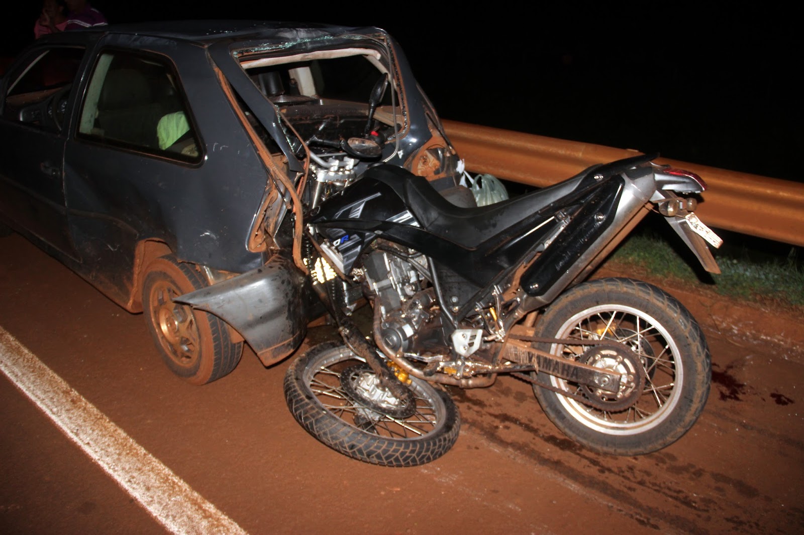 Uma colisão envolvendo carro e moto deixou três pessoas feridas, na noite desta quinta-feira (6), no município de Dourados.